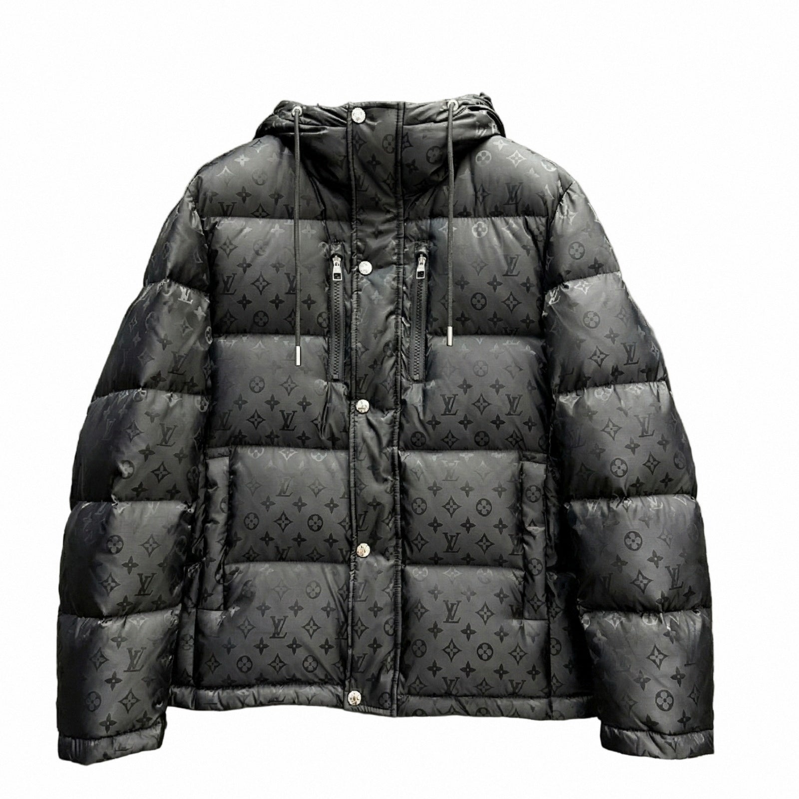 Indulge in the pinnacle of winter luxury with the Louis Vuitton Monogram Noir Arctic Down Jacket, a masterpiece of craftsmanship designed for both warmth and refined elegance. Wrapped in a sleek black silhouette embellished with a tonal all-over Monogram motif, this jacket embodies the sophistication and exclusivity of the Louis Vuitton Maison. The plush down filling and sculpted padded hood offer enveloping comfort, while the polished hardware and meticulous detailing elevate this puffer to a statement piece of modern couture. Perfectly suited for city sophistication or winter retreats, it delivers unmatched warmth without compromising iconic LV style.