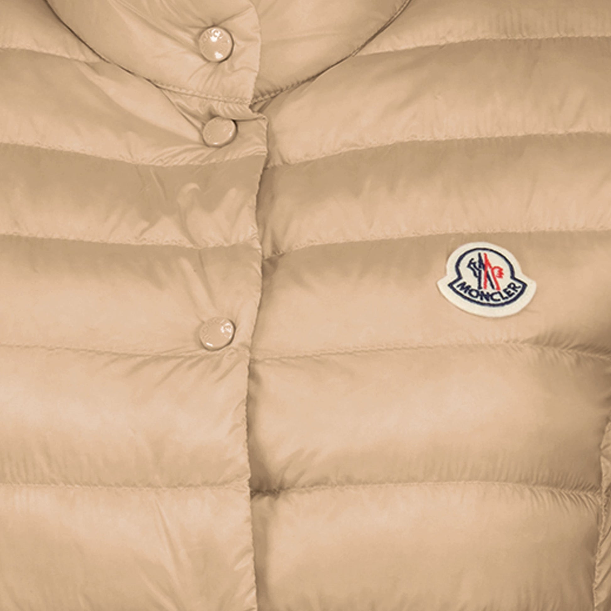 The beige Liane sleeveless puffer jacket from Moncler is an elegant piece for women. It is part of the Fall-Winter 2024 collection and stands out for its modern and practical design.