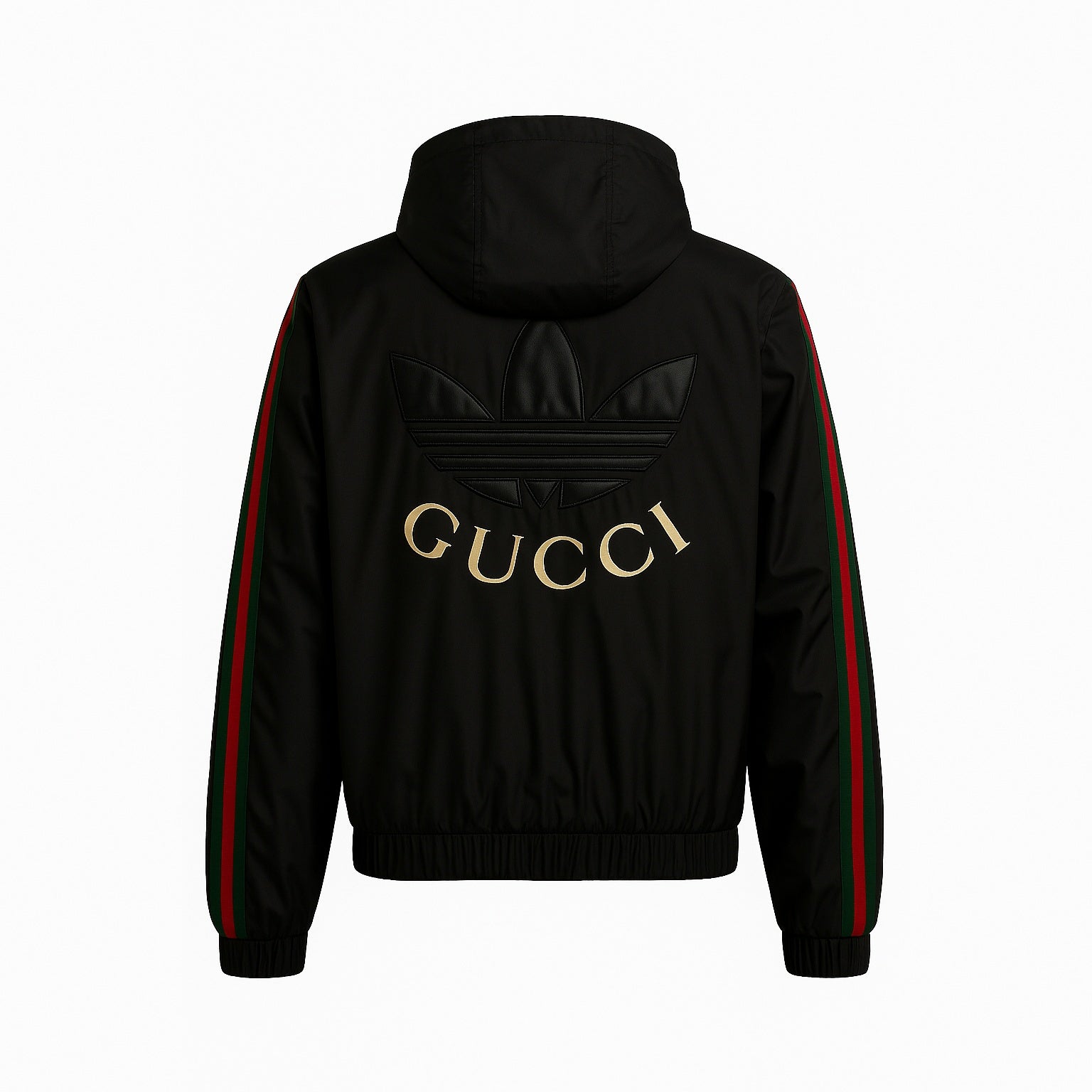 Blending iconic streetwear with luxury craftsmanship, the Adidas x Gucci Windbreaker redefines modern athleisure. Crafted in sleek black, this jacket is detailed with Gucci’s signature green and red Web stripes running down the sleeves, adding a bold touch to Adidas’ sporty silhouette.