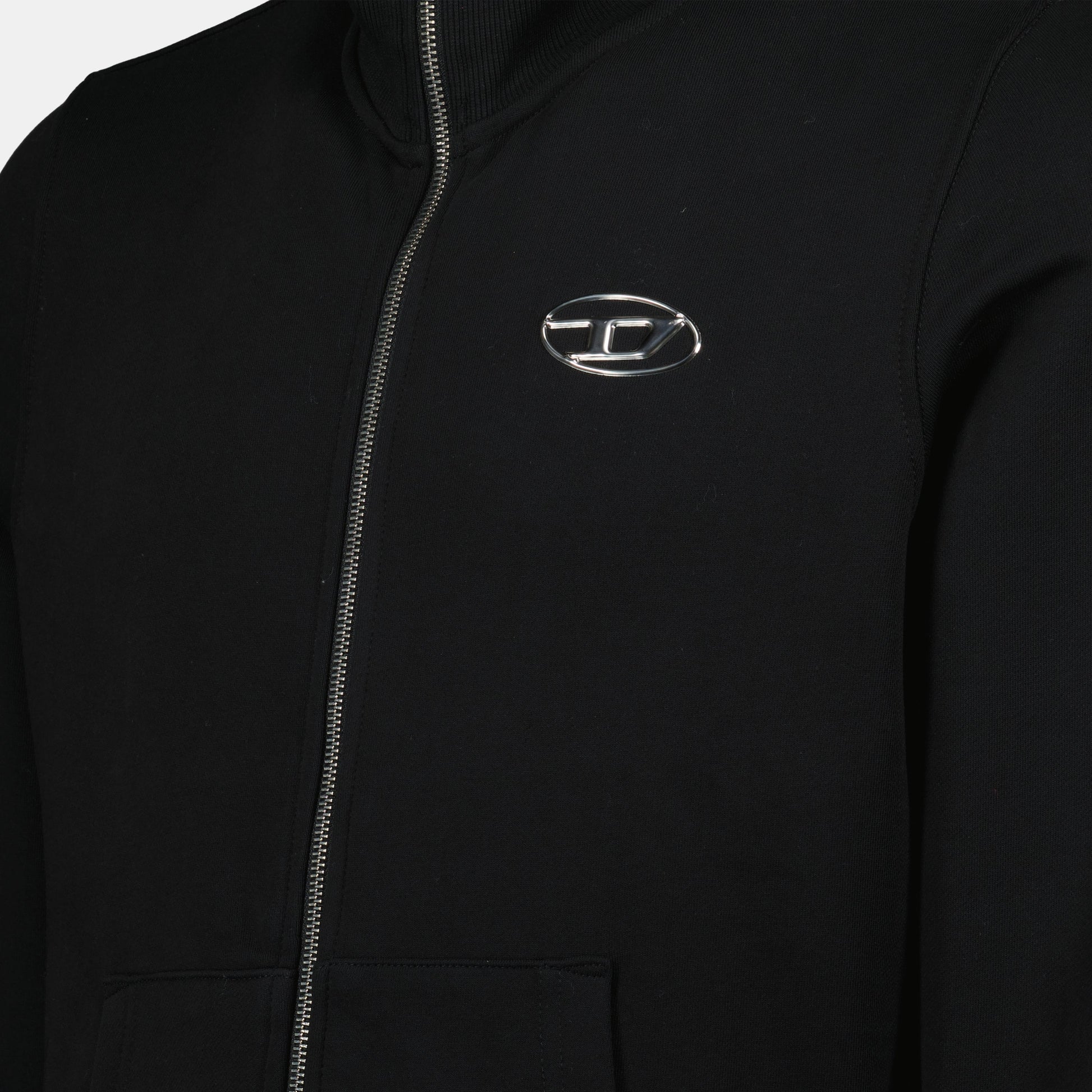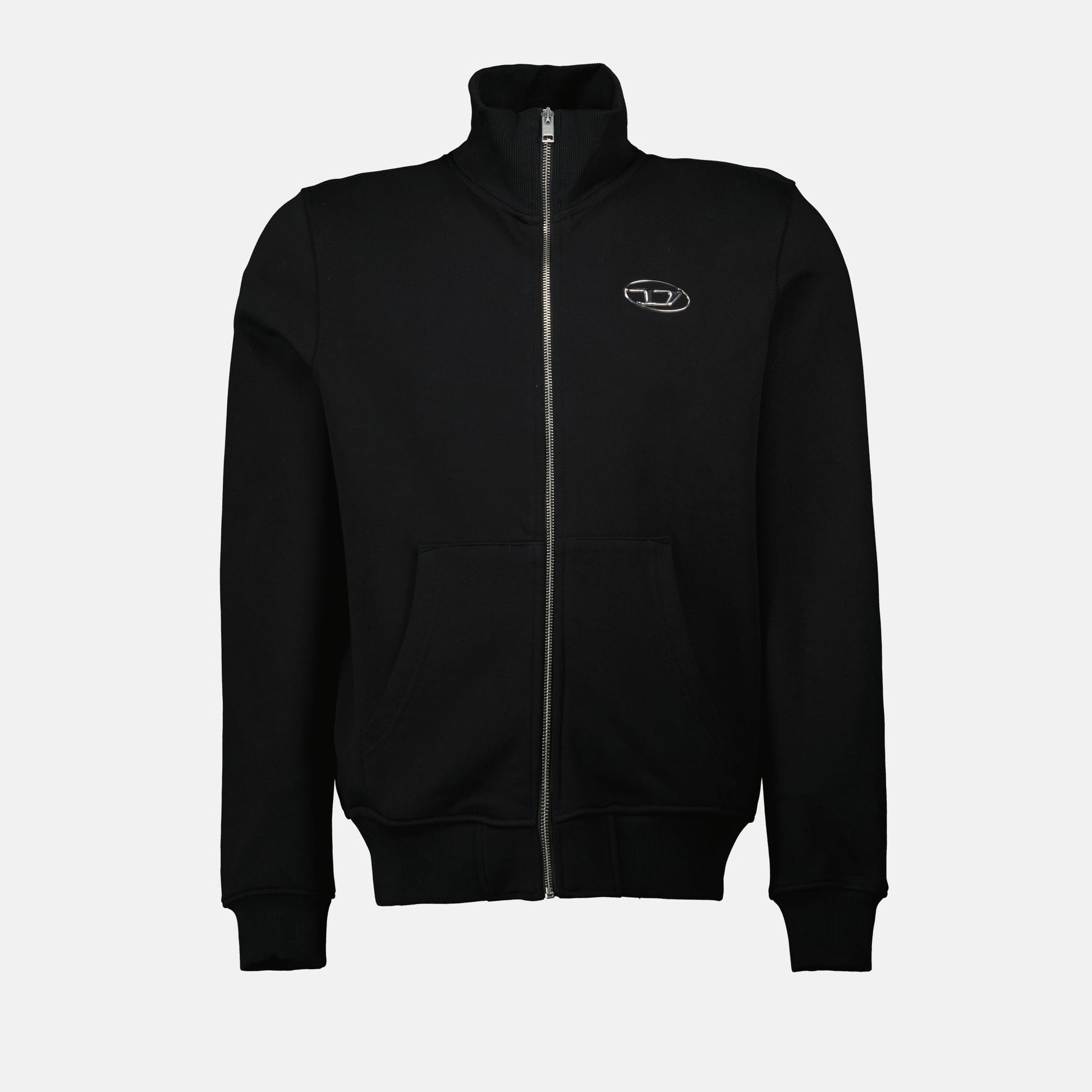The black S-Ginni-Zip-Od zip sweatshirt from Diesel is designed for men. It is part of the Spring-Summer 2025 collection and is made from cotton with modern details.