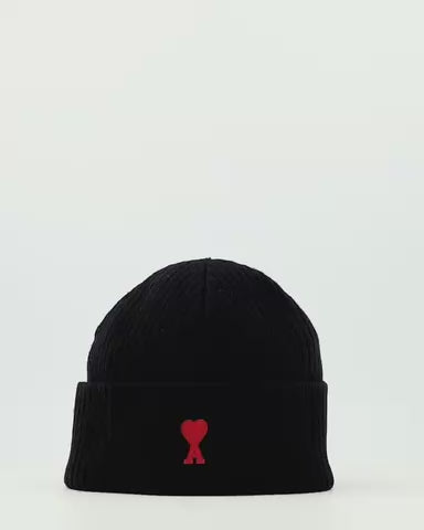 Its minimalist design is elevated by the brand’s signature Ami de Cœur logo—a red heart combined with the letter “A”—embroidered on the folded brim, symbolizing friendship, authenticity, and love. The fold-over cuff adds structure and a snug fit, creating a refined balance between casual and contemporary style.