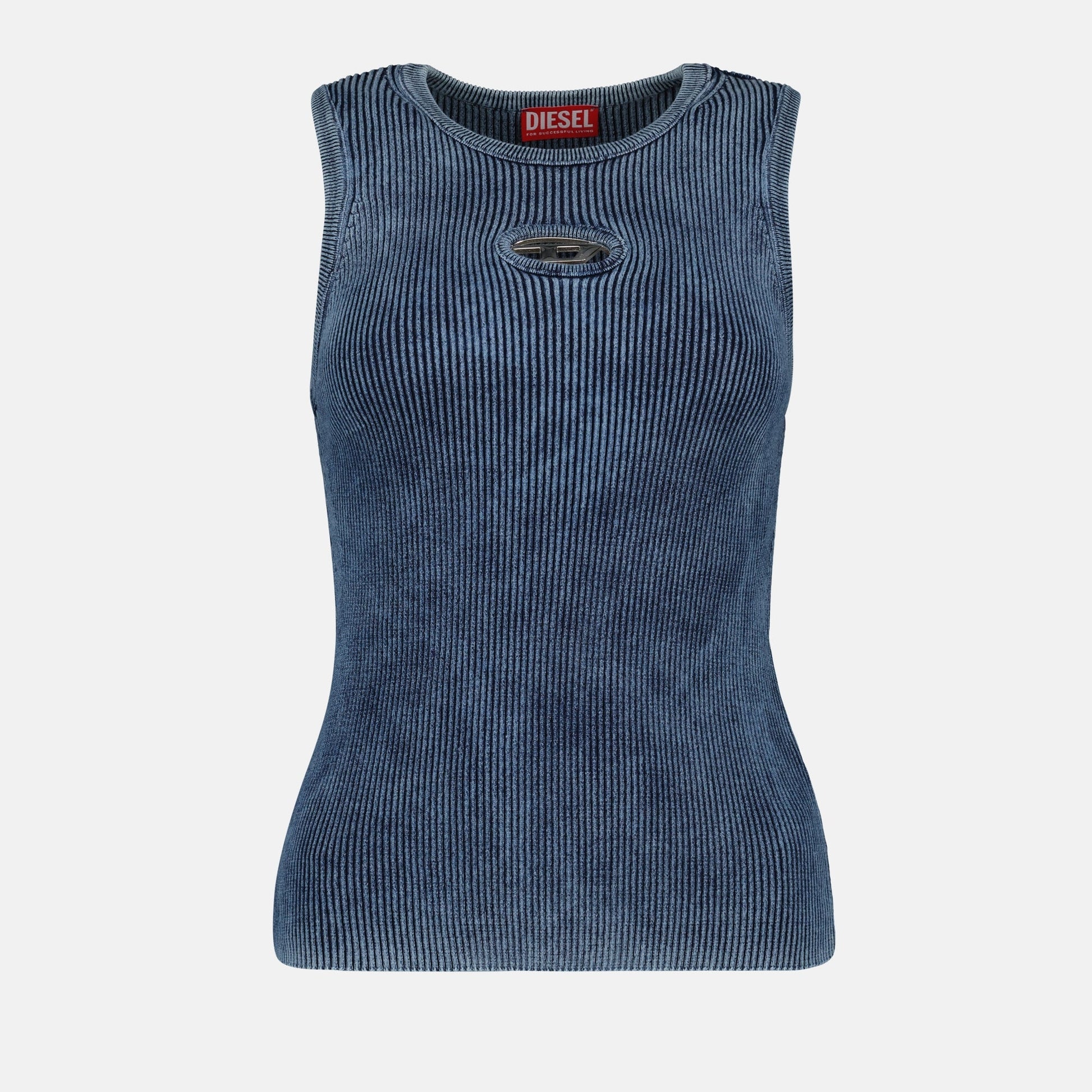 Top M-Anchor-A-Sl Diesel collection Autumn-Winter 2024 for Women. Made of ribbed knit. Item color: Blue. Round neck and Sleeveless design.
