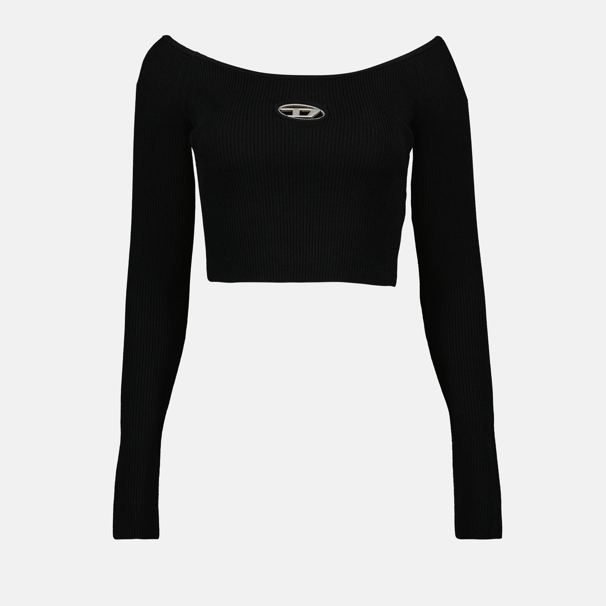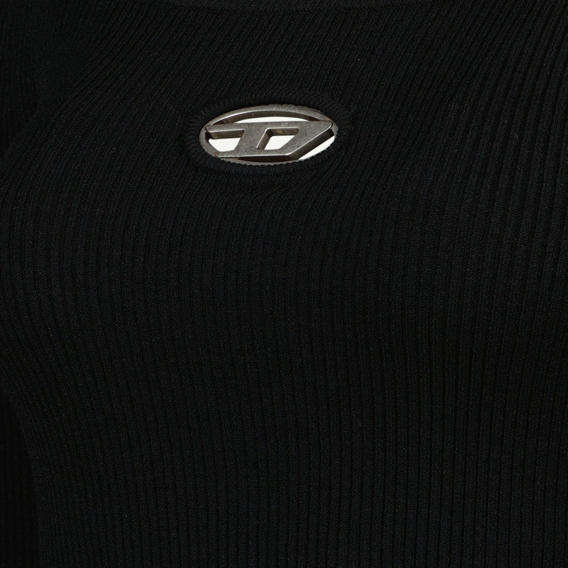 Top M-Vera-Ls in ribbed knit from the brand Diesel, designed for women. This model is part of the Spring-Summer 2025 collection and comes in black with long sleeves.