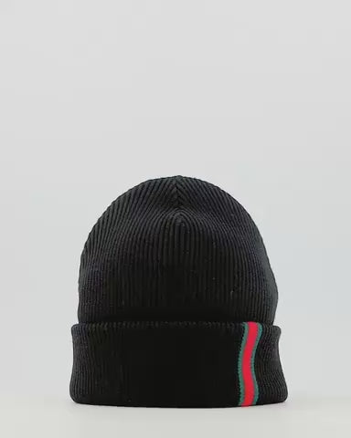 Its minimalist silhouette is enhanced by the iconic green and red Gucci Web stripe on the folded brim — a subtle yet unmistakable nod to the brand’s heritage. Designed for versatility, the Ace Beanie pairs effortlessly with both casual and refined looks, offering a sleek finishing touch to any outfit.