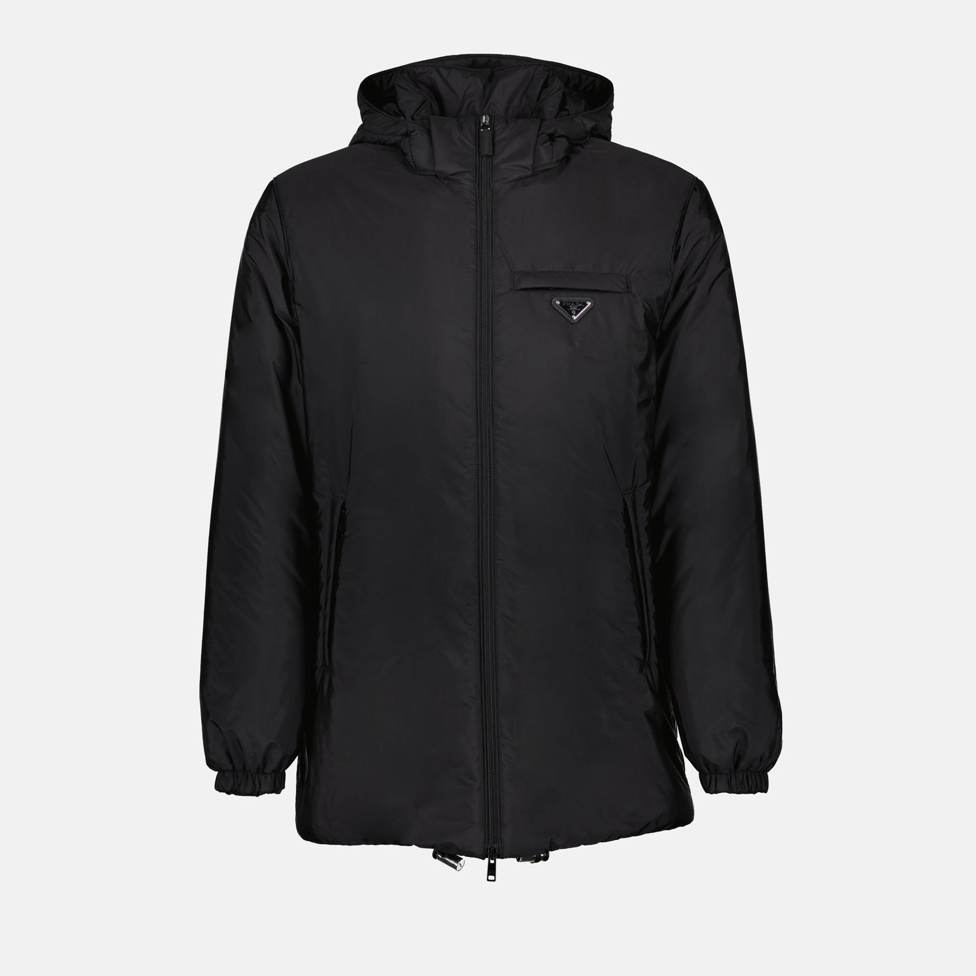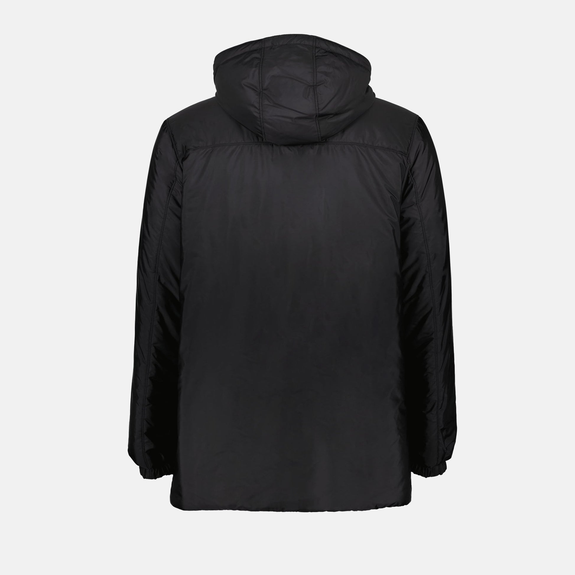 Re-Nylon jacket from the Prada Fall-Winter 2024 collection for Men. Made from nylon. Item Color: black. High collar and long sleeves.