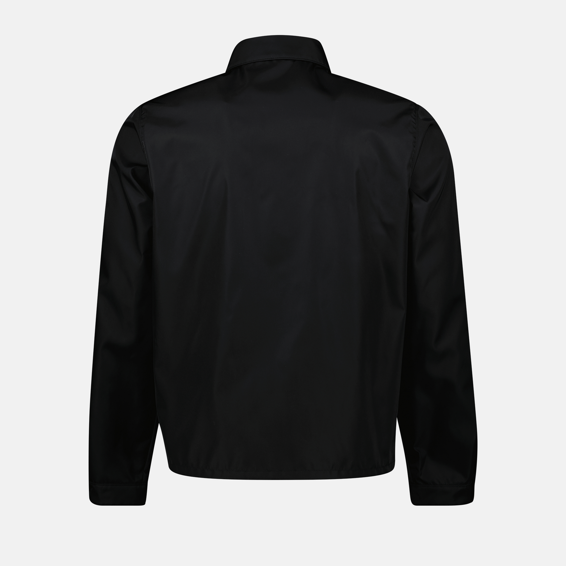 Black Re-nylon jacket from Prada for men, combining style and durability. This piece is part of the Spring-Summer 2025 collection, crafted from recycled nylon with modern details.