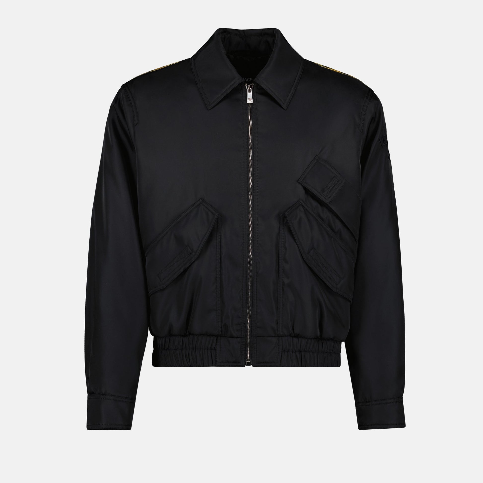 Reversible jacket from the Versace Fall-Winter 2024 collection for men. Made of nylon. Reversible design item. Classic collar and long sleeves.