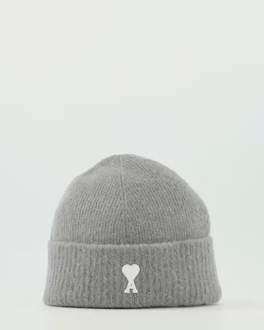 Its ribbed knit construction ensures a comfortable, flexible fit, while the fold-over cuff adds a timeless touch. The design is subtly elevated with the brand’s signature Ami de Cœur logo—a heart combined with the letter “A”—embroidered in white on the front, symbolizing warmth, love, and authenticity.