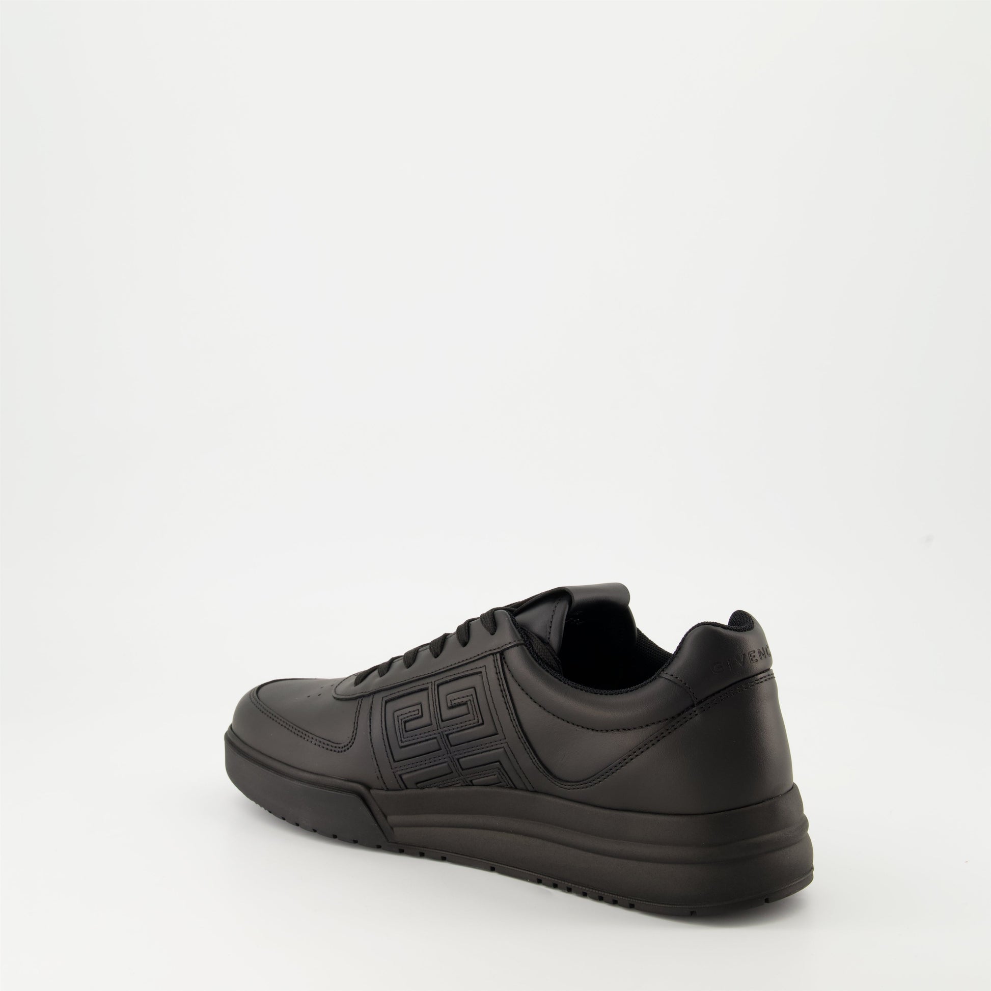 G4 Sneakers from the Givenchy Autumn-Winter 2024 collection for Men. Made of smooth leather. Solid black color. Round toe and rubber tread sole. This item is available in several variants.
