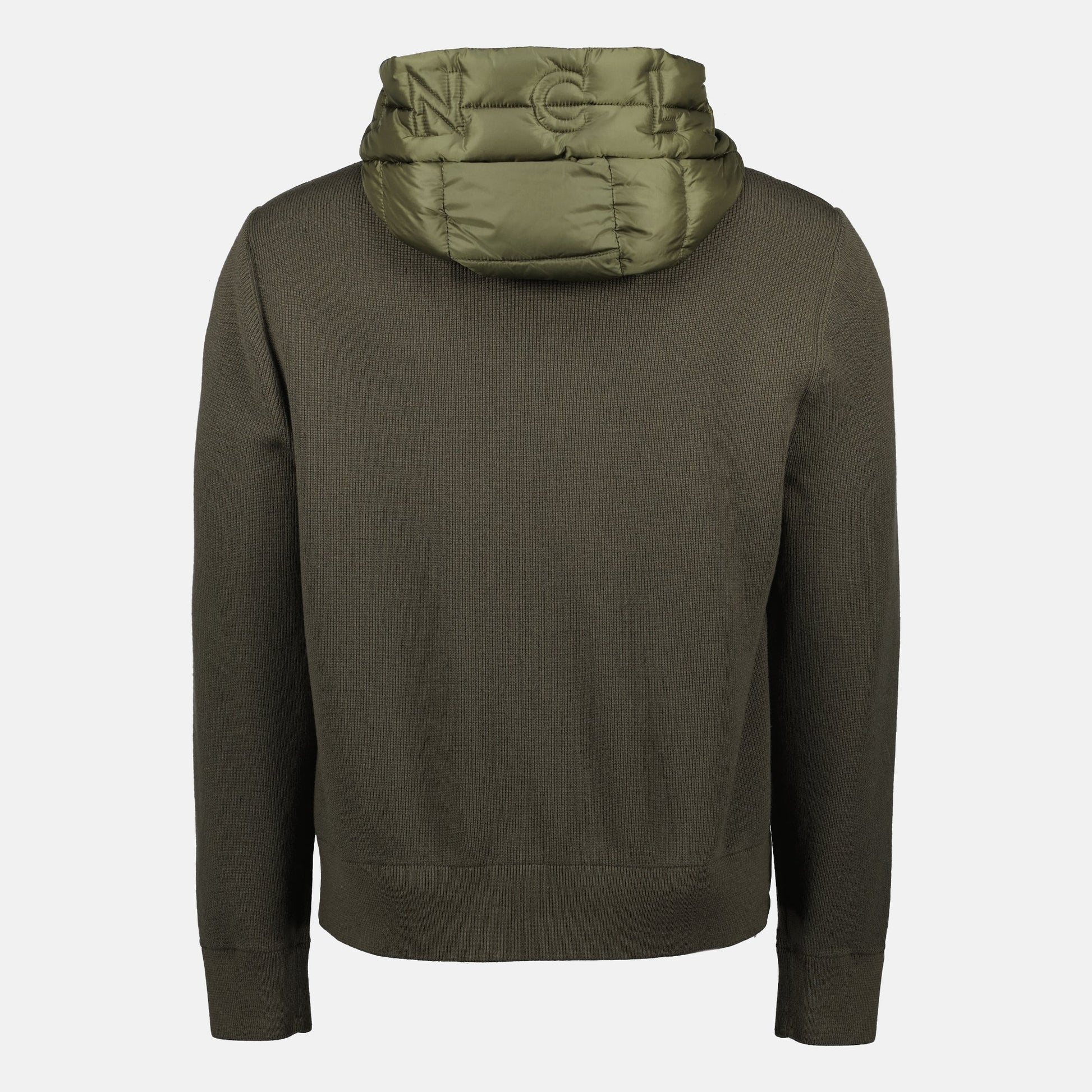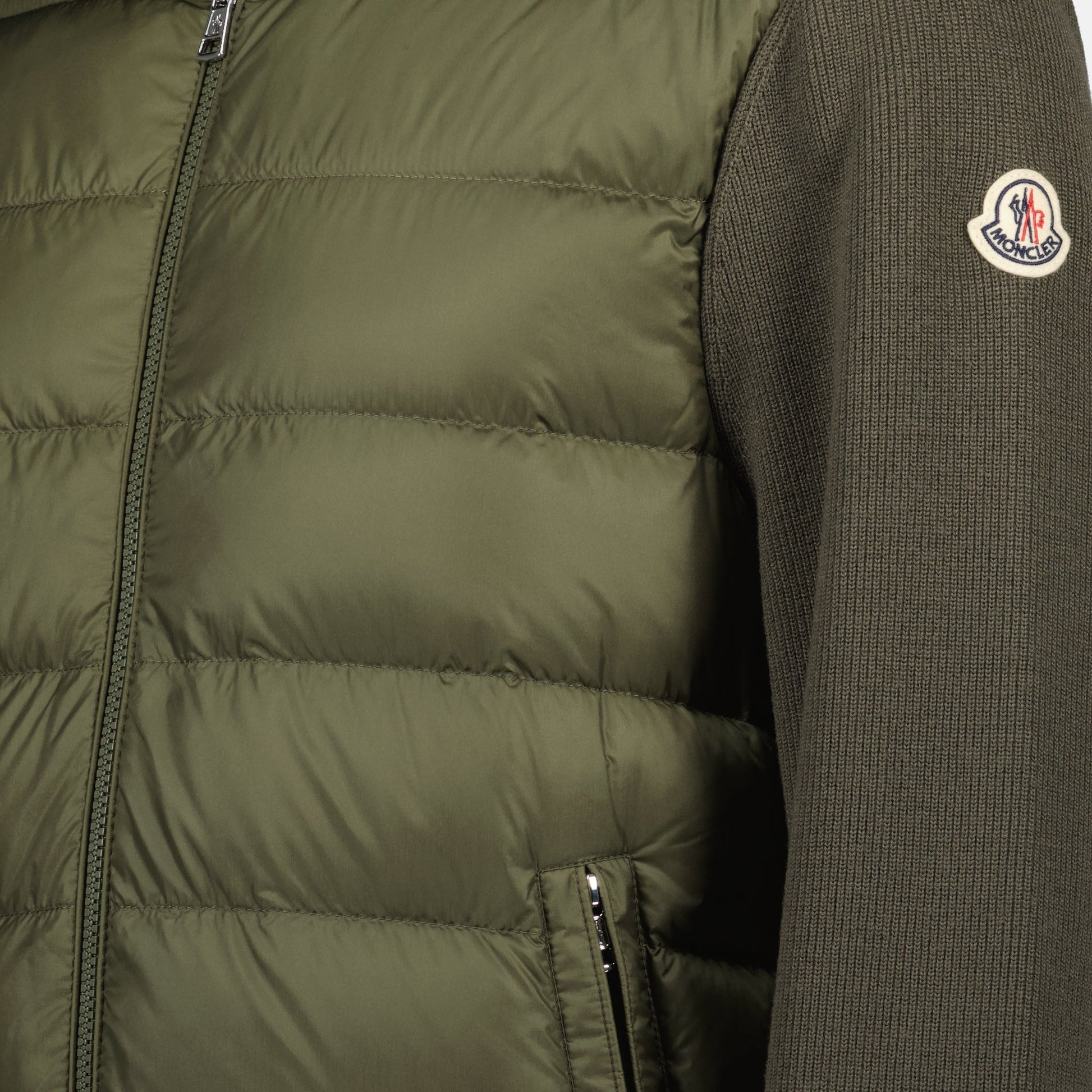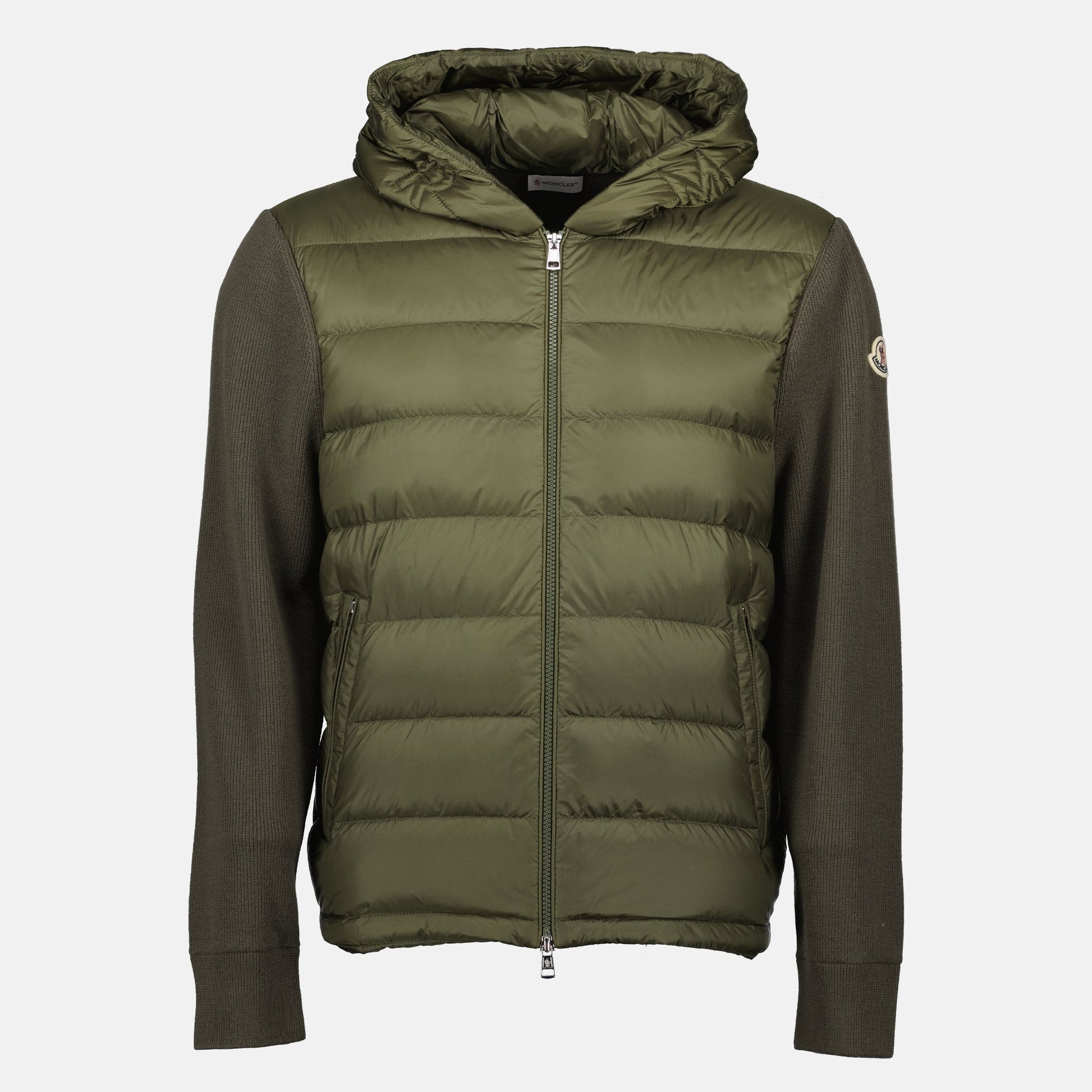 Kaki two-tone jacket from Moncler for men, combining wool and nylon with down padding. It is part of the Autumn-Winter 2025 collection.