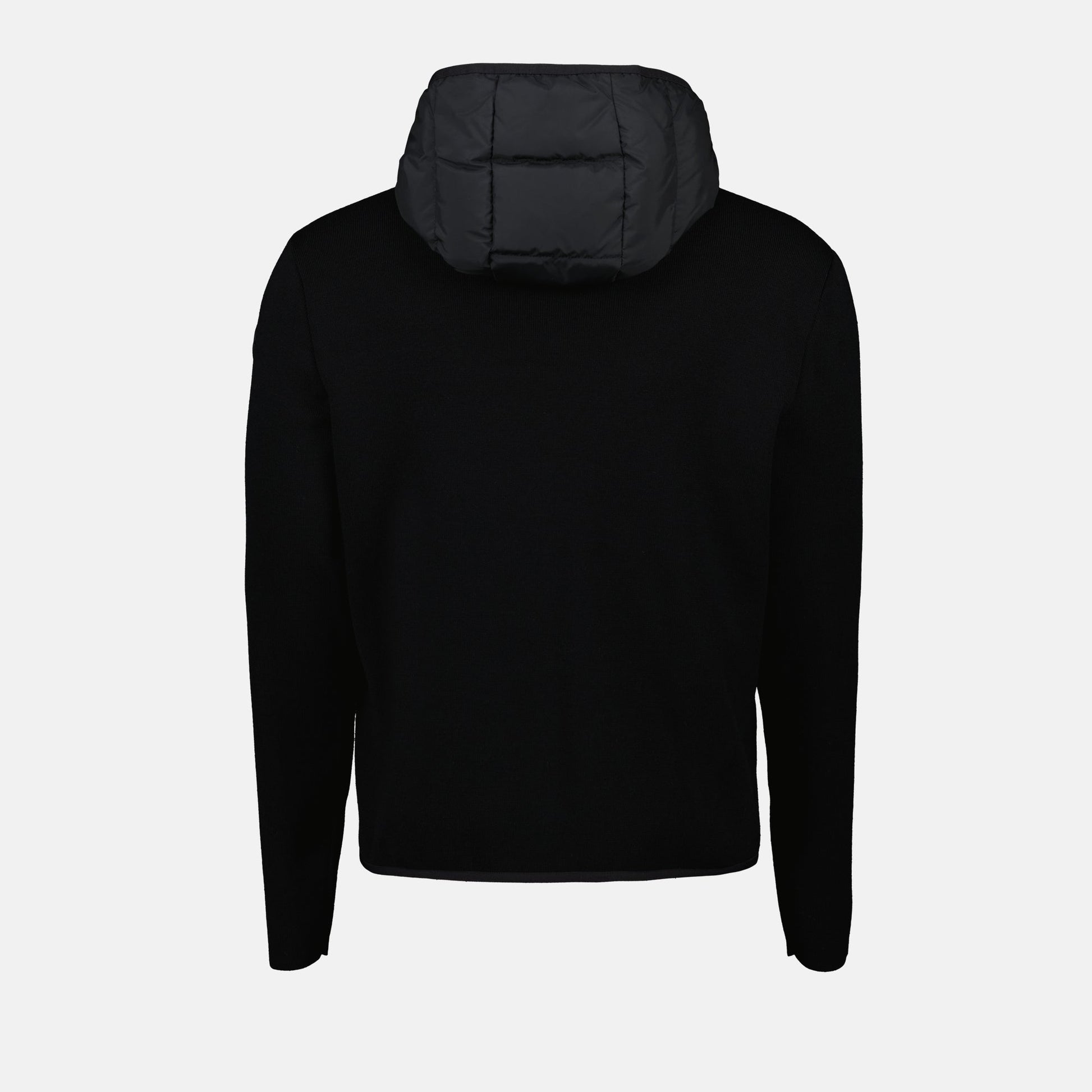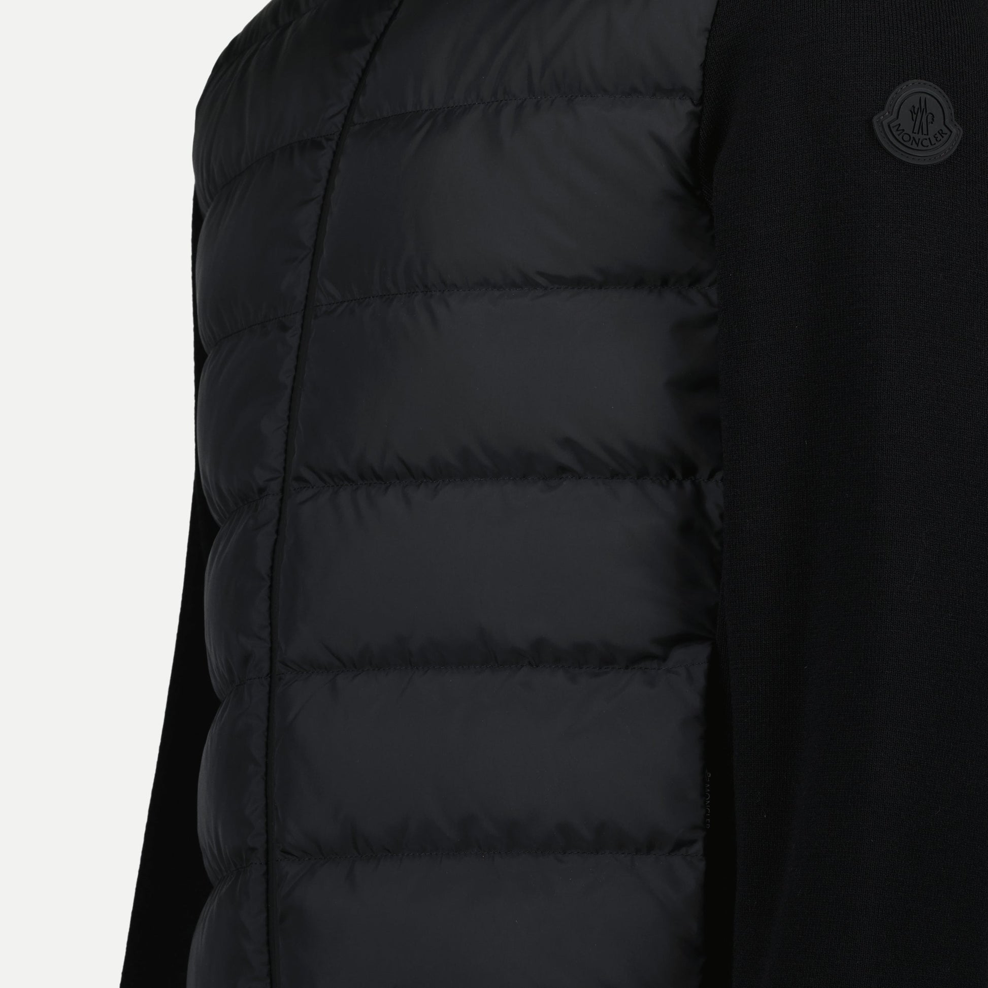 Black two-material jacket by Moncler for men, combining polyester and wool. This piece is part of the Autumn-Winter 2024 collection, featuring a modern and functional design.