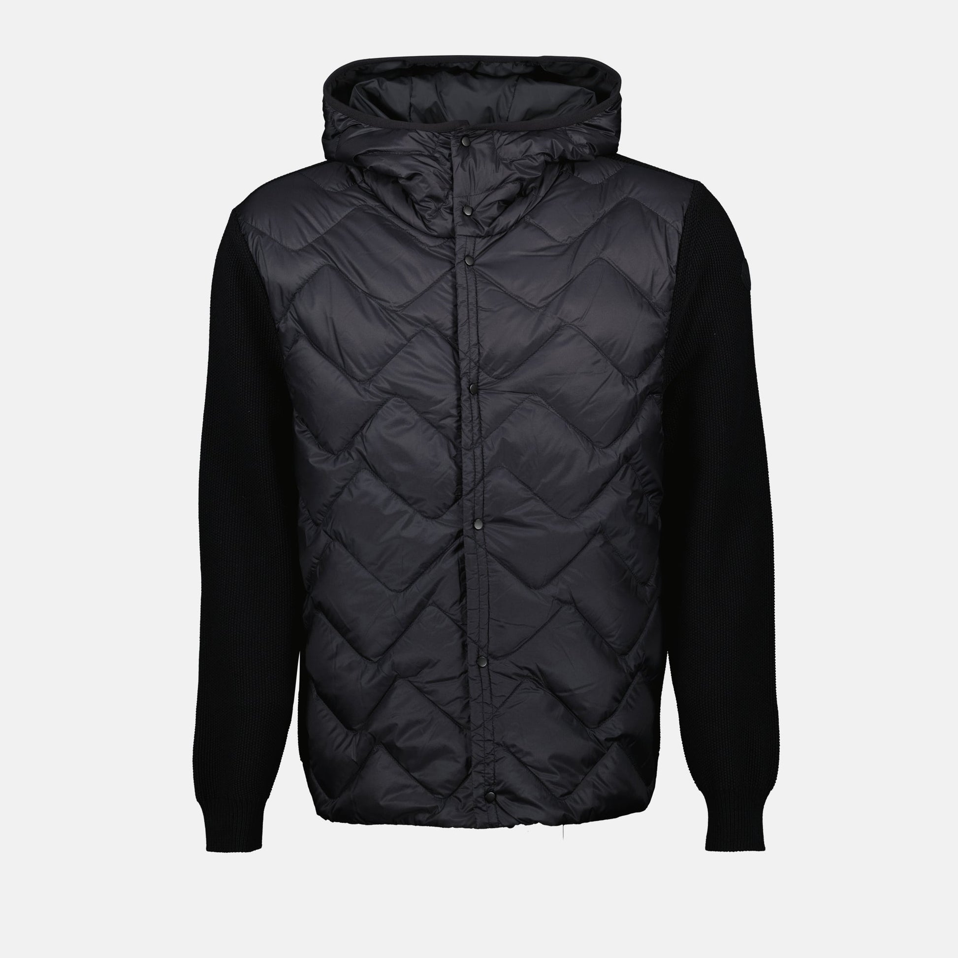 Black two-tone quilted jacket from the brand Moncler for men. This piece is part of the Spring-Summer 2025 collection and combines style and comfort with a unique design.