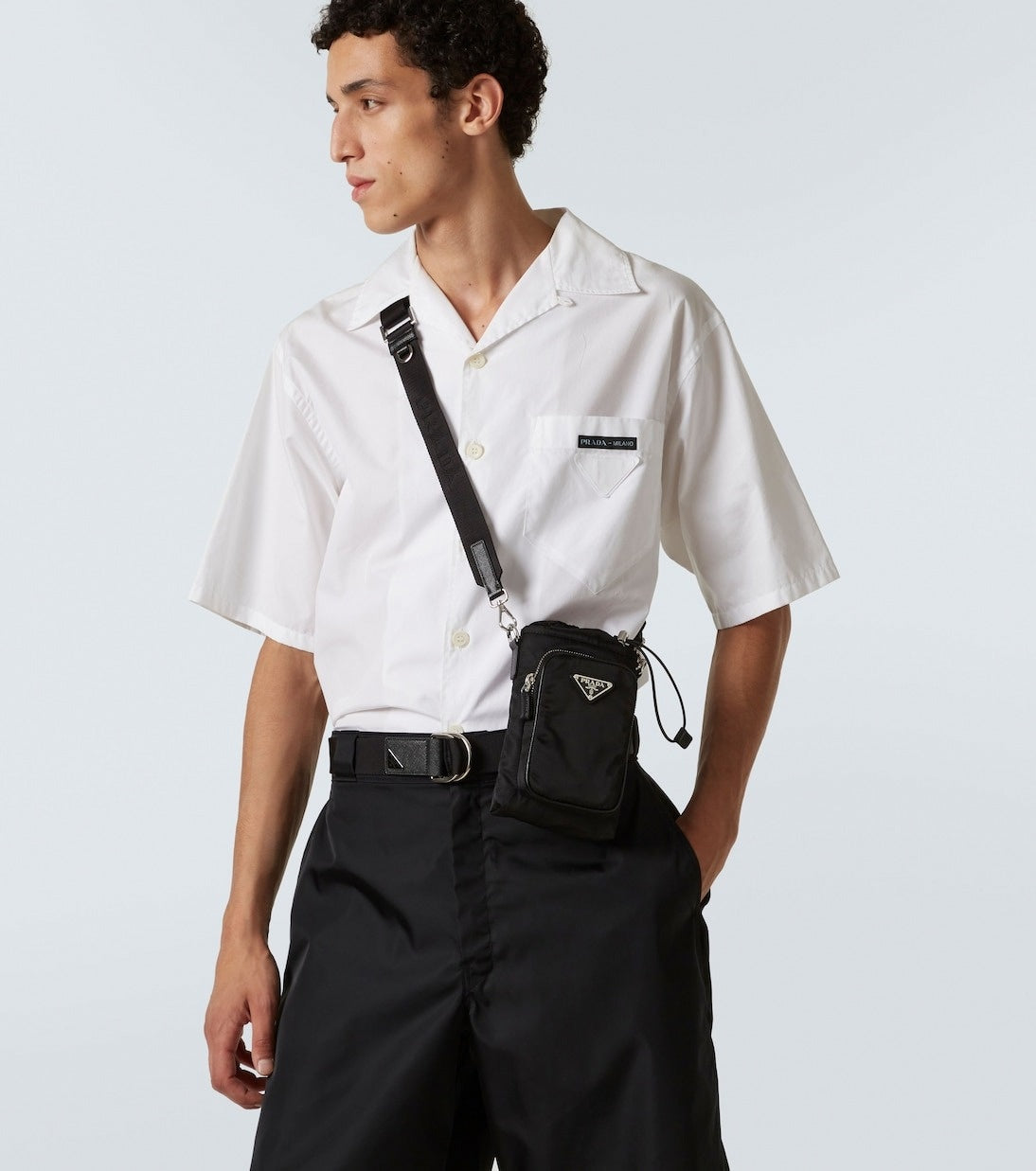 Crafted from Re-Nylon, this Prada phone case features two zippered compartments, an adjustable strap, and the brand's iconic triangle emblem on the front.