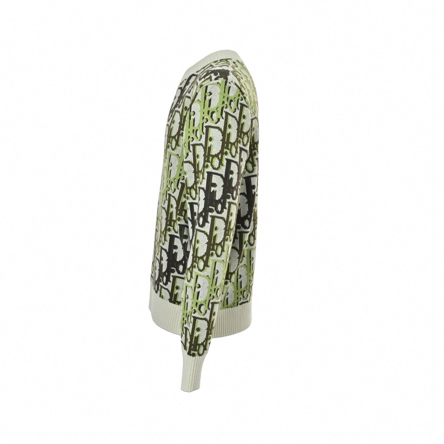 Electrify your knitwear rotation with this vibrant reinterpretation of Dior's archival codes. This crewneck takes the iconic 1967 Oblique motif and propels it into the future with a striking tri-color palette, blending off-white and black with hits of fluorescent green for a bold, graphic impact.