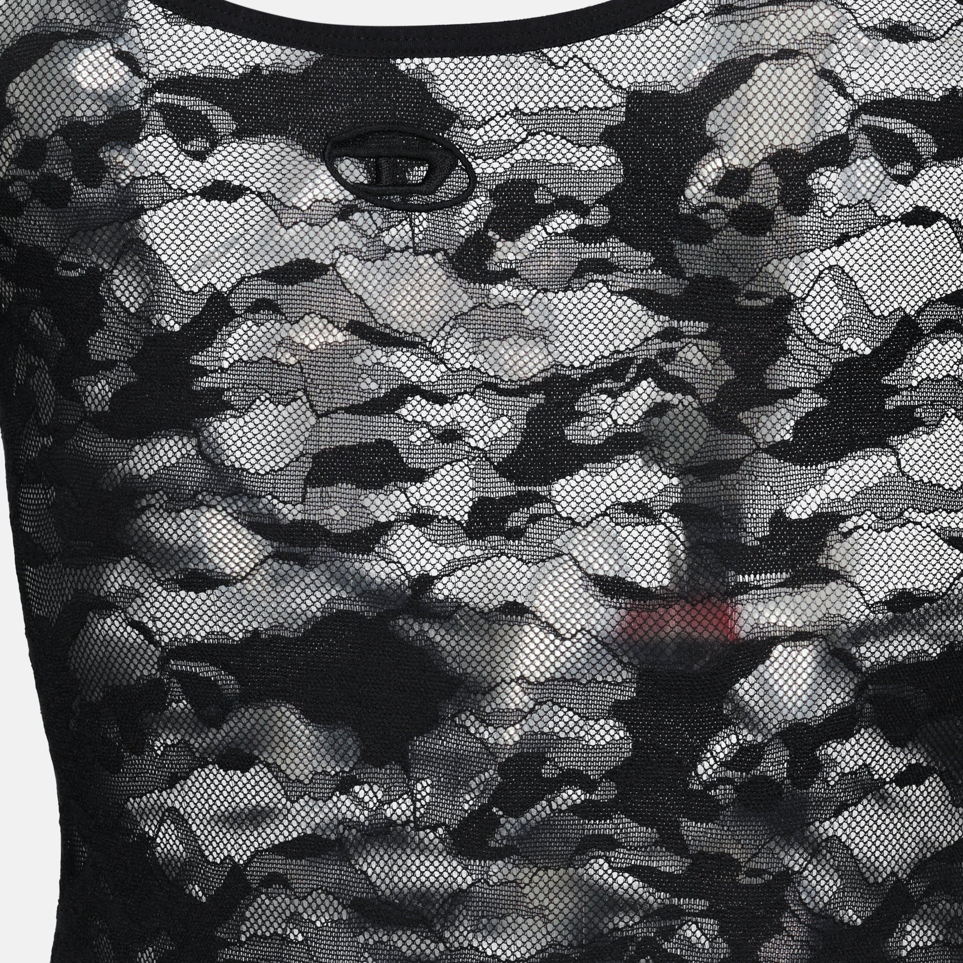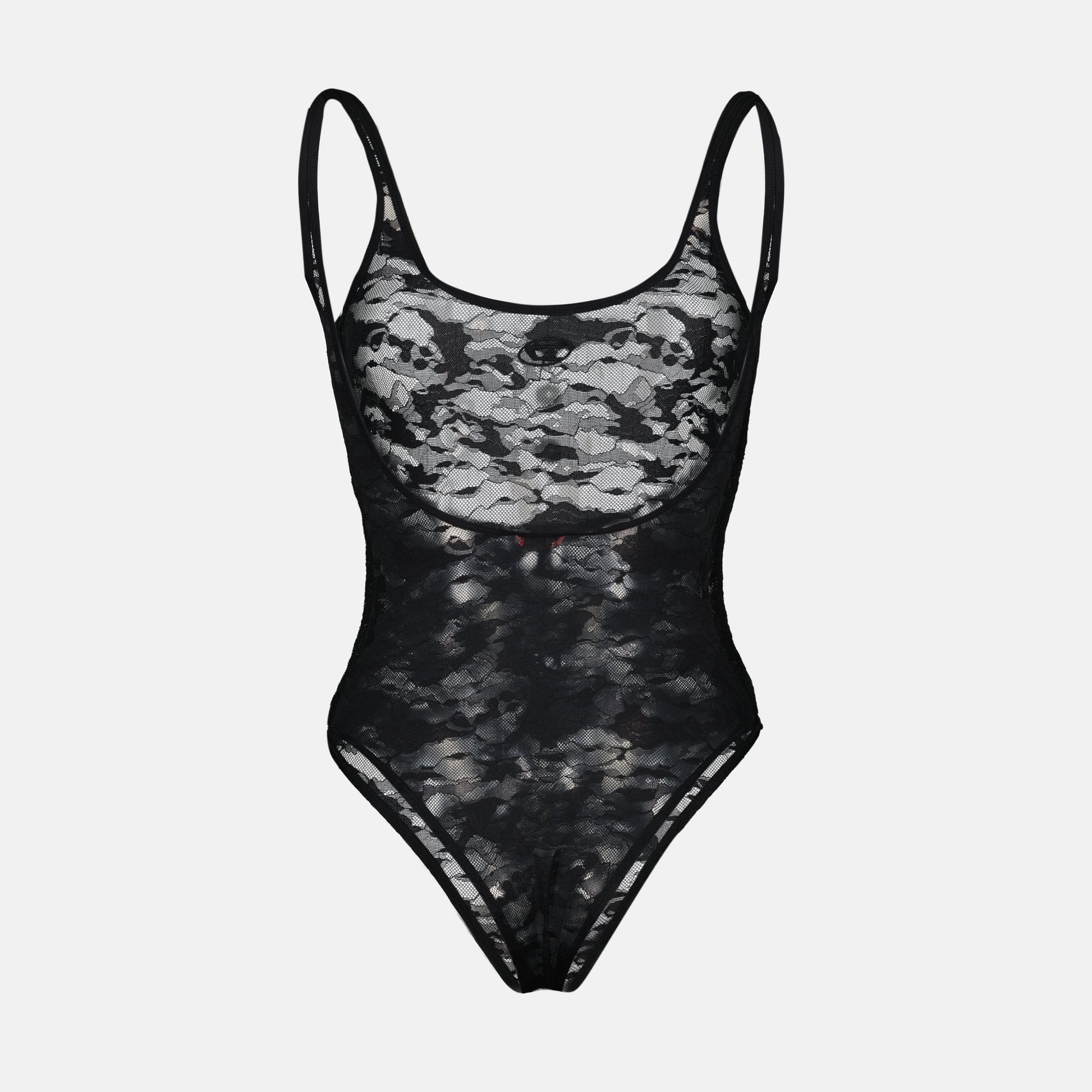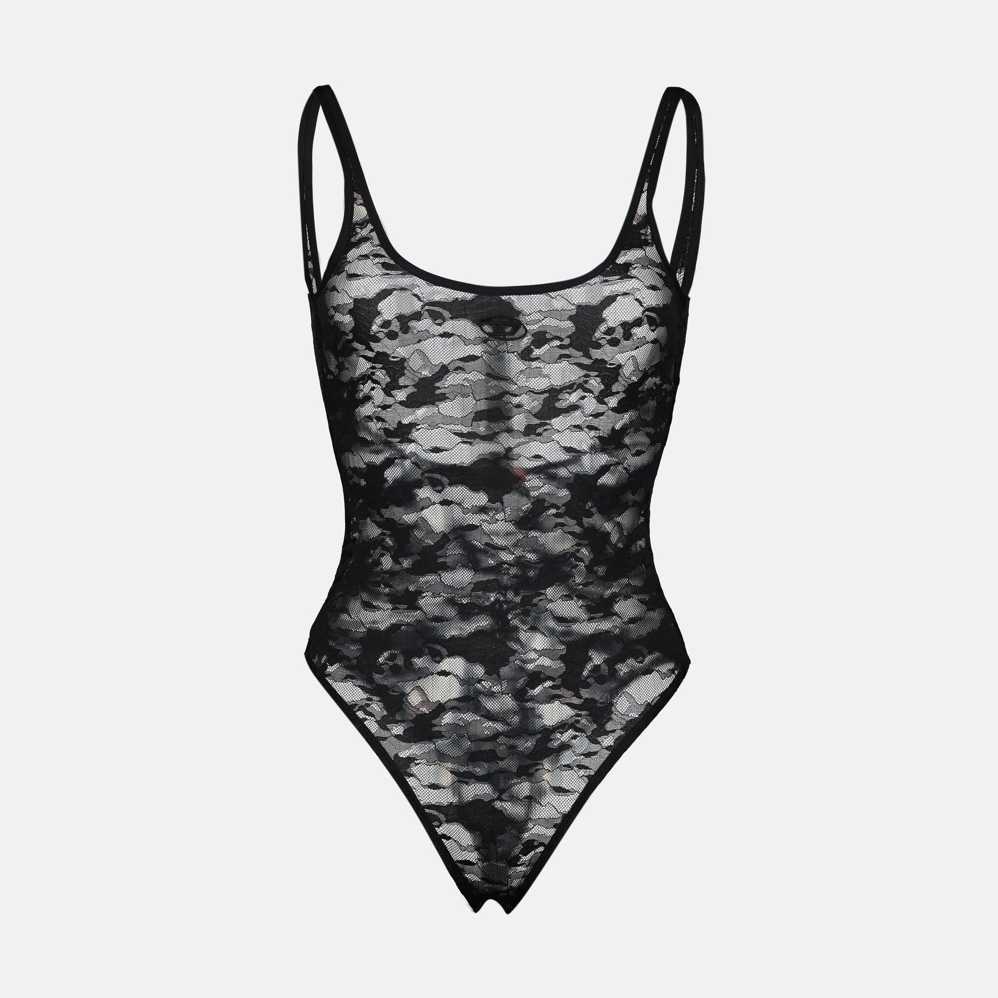 Megan in black lace from the brand Diesel is a women's bodysuit from the Spring-Summer 2025 collection. It features a rounded neckline and thin straps, combining elegance and comfort.