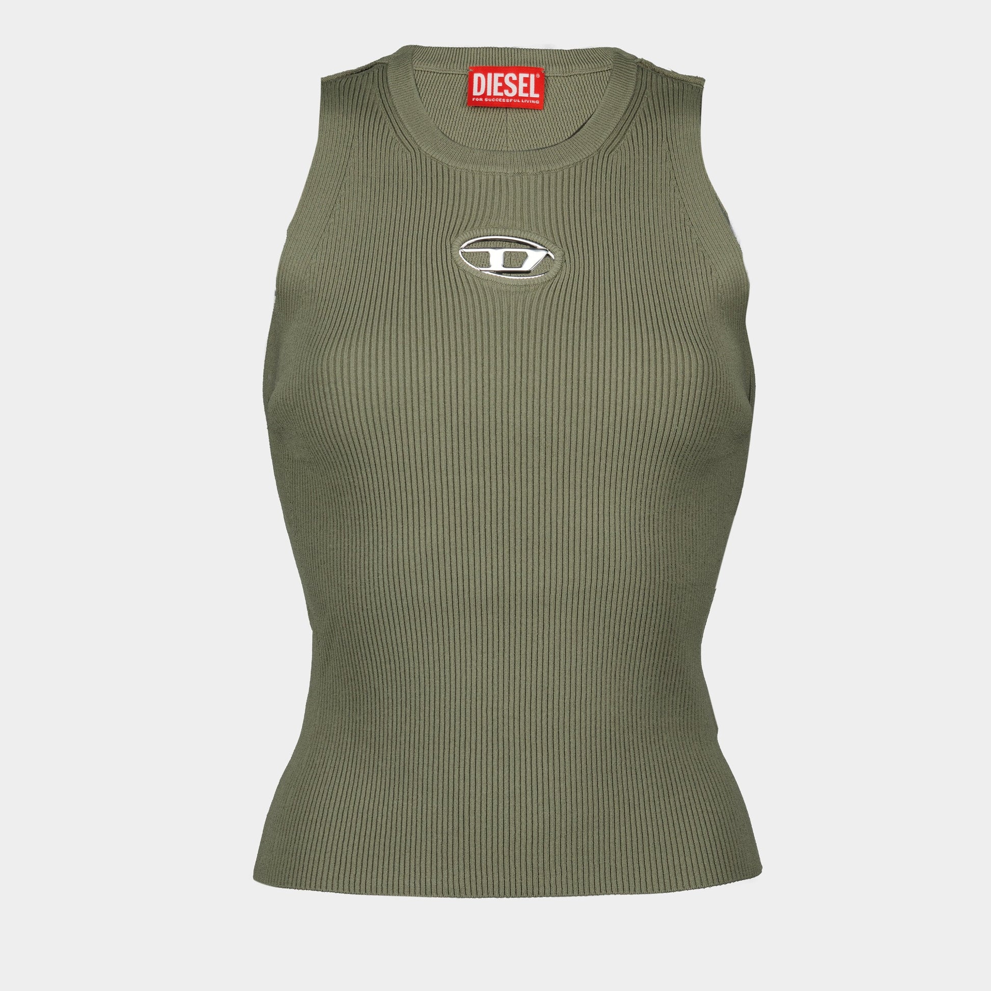 Kaki M-Caddix ribbed top from the brand Diesel, designed for women, features a sleeveless design and slim fit. It is part of the Spring-Summer 2025 collection.
