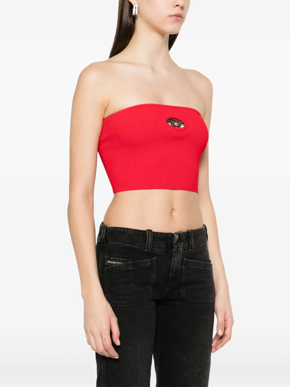 Top M-Clarksvillex red from the brand Diesel, designed for women. This model is part of the Spring-Summer 2025 collection and features a crop cut and a sleeveless design.