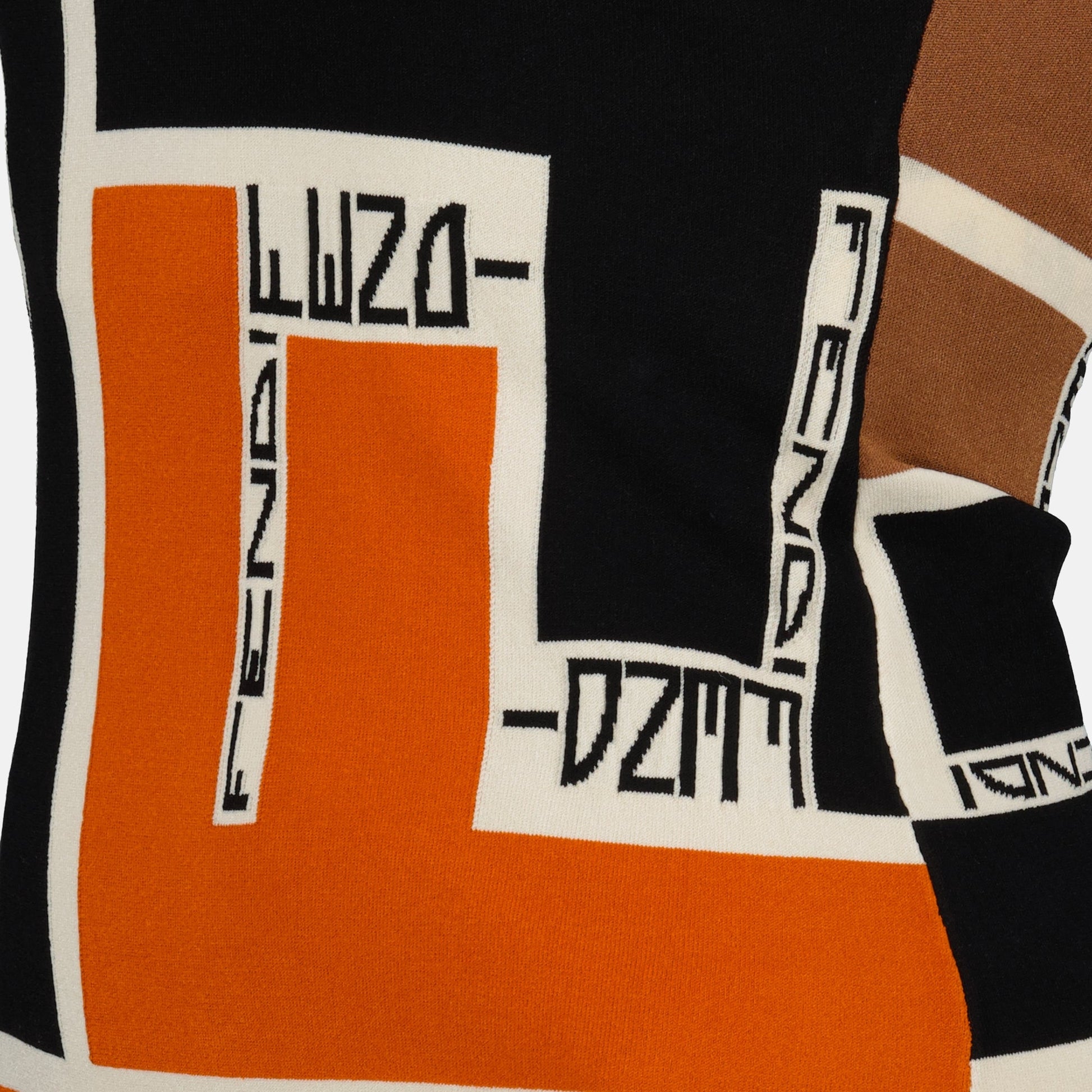 Sleeveless top in Lycra® Fendi Spring-Summer 2024 collection for Women. Made from Japanese Lycra® knit. Item in Orange color. High neck and sleeveless design.