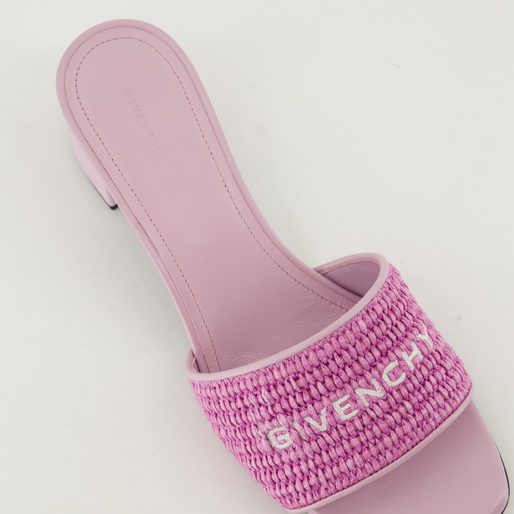 4G raffia mules in violet from Givenchy for women. This shoe is part of the Spring-Summer 2025 collection and features an elegant design with a cylindrical heel.