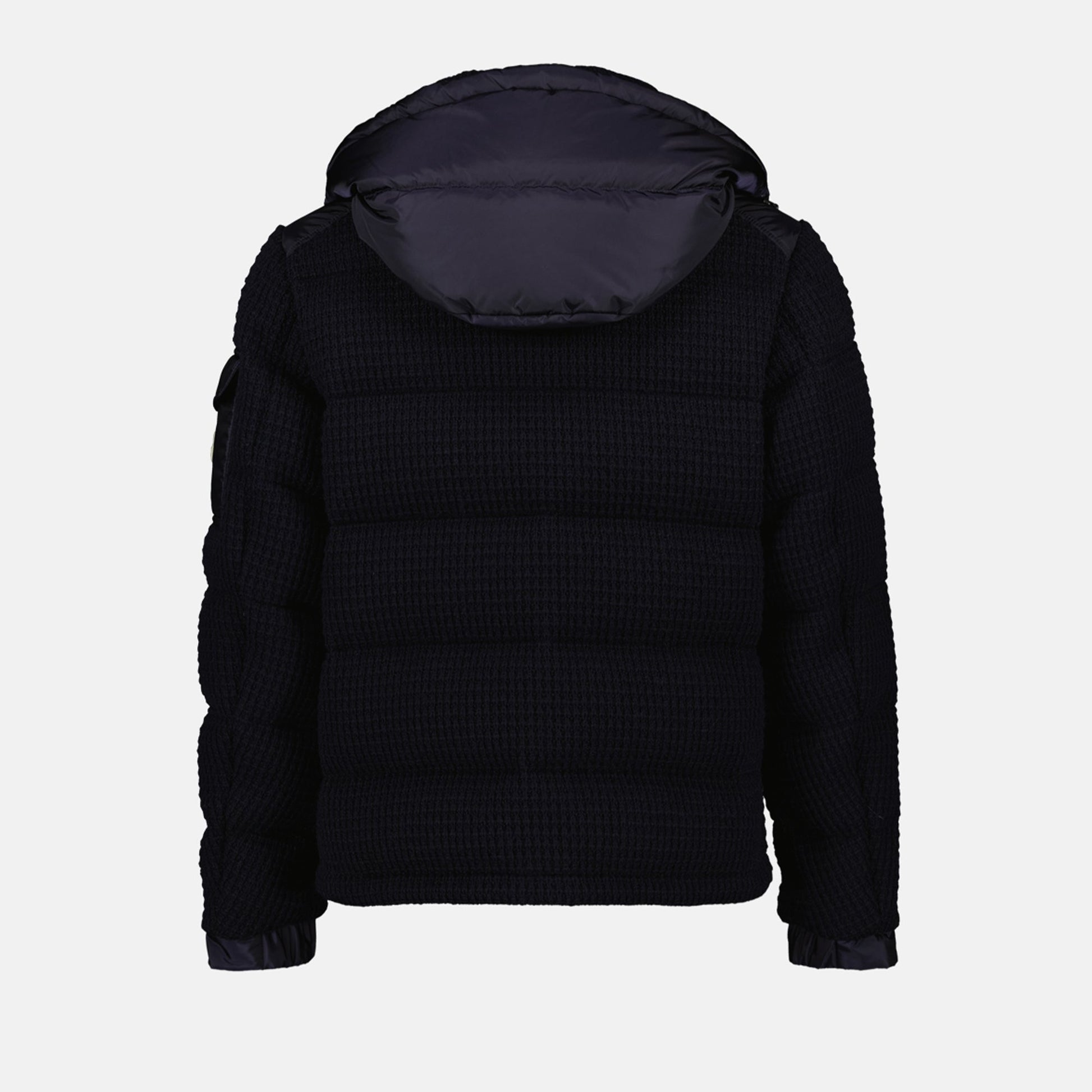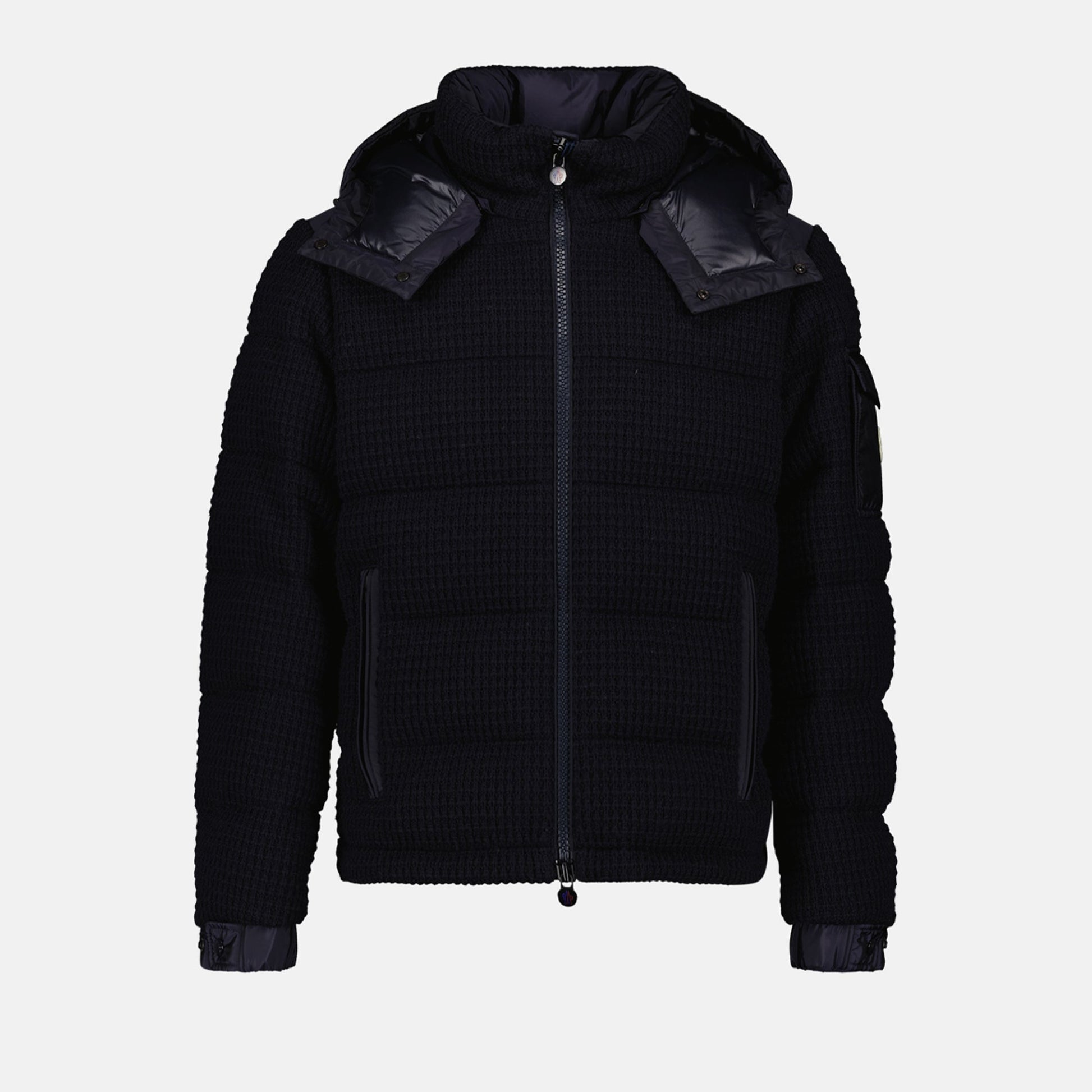 Lagdei Down Jacket from the Moncler Autumn-Winter 2024 collection for Men. Made from nylon and wool. Item in navy blue. High collar and long sleeves.