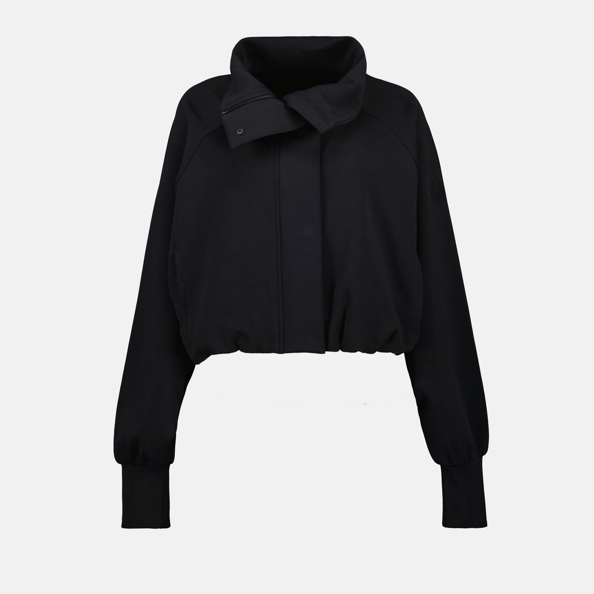 Black Short Zip-up Jacket from Moncler for women, made of cotton and polyester. This piece is part of the Spring-Summer 2025 collection, combining style and comfort.