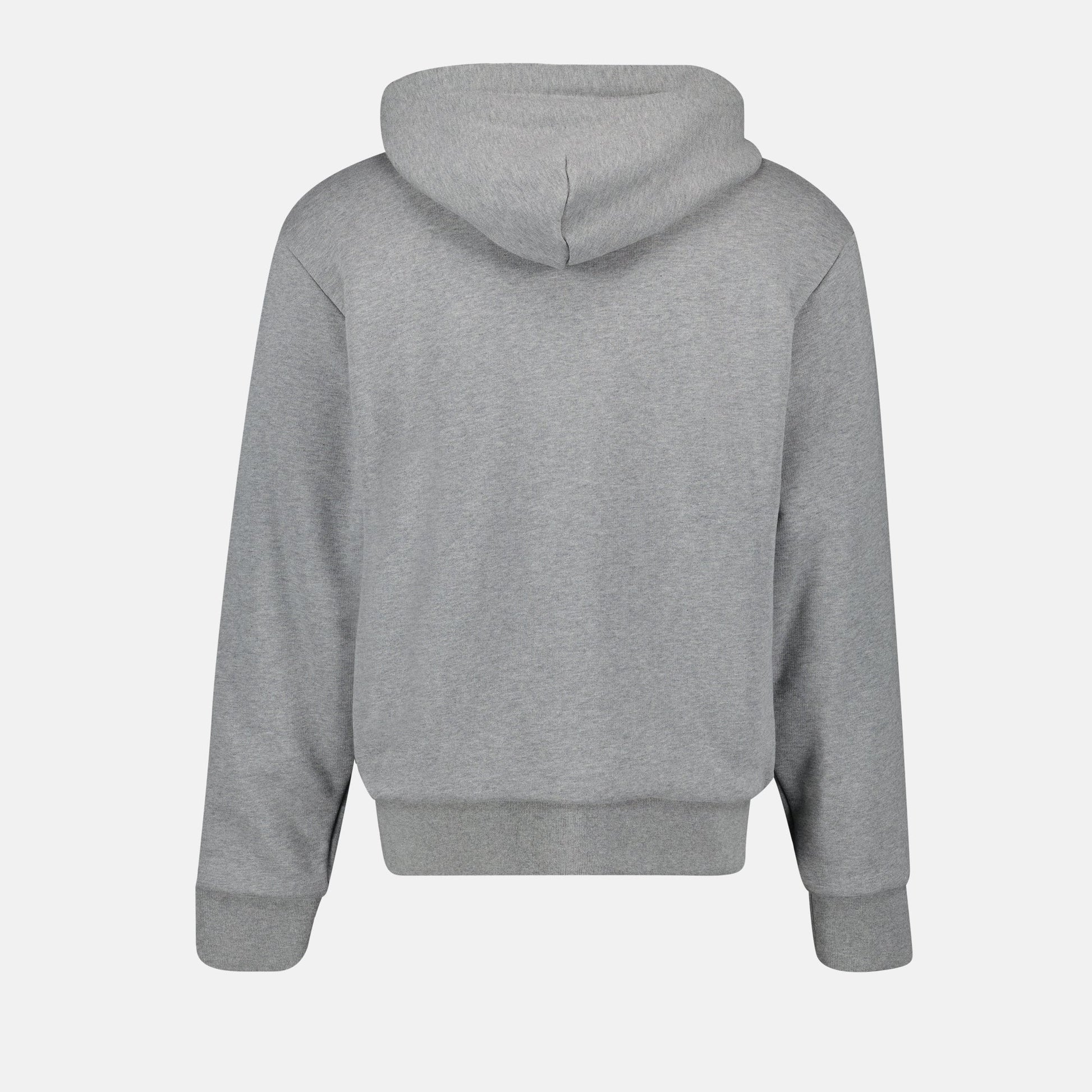 Reversible zip sweatshirt in khaki and gray from Moncler for men, part of the Autumn-Winter 2024 collection. It features an oversized fit, an adjustable hood, and side slit pockets.
