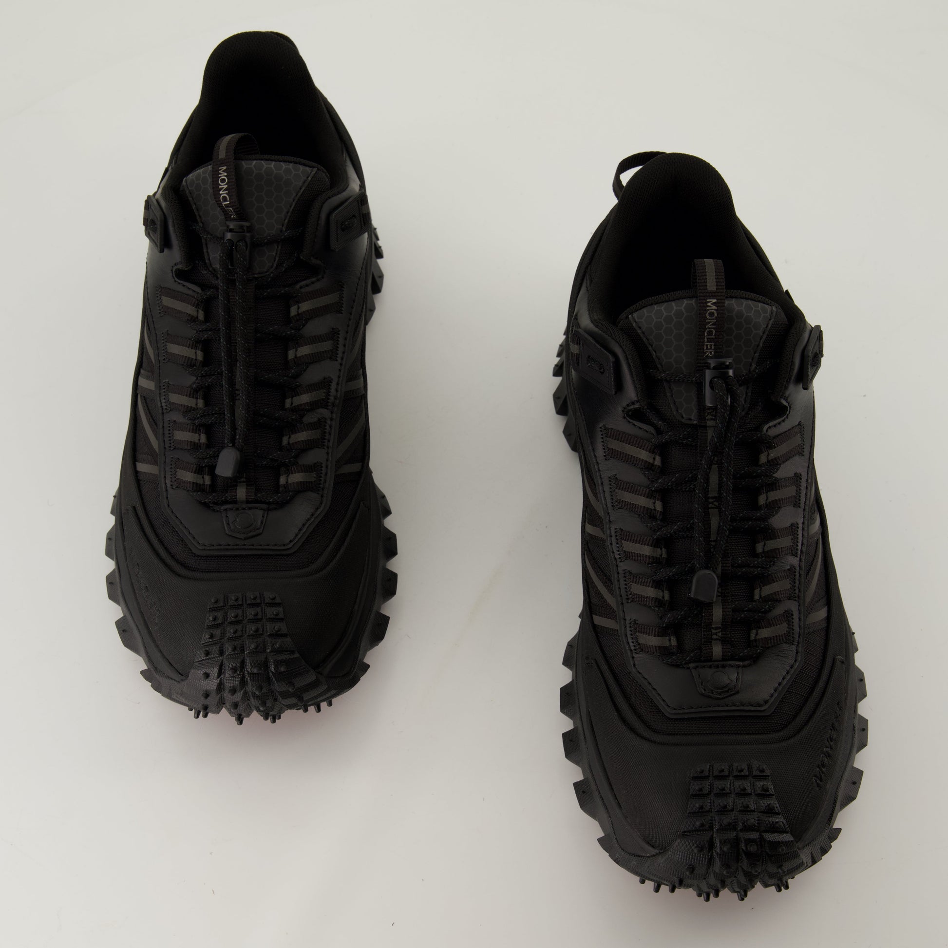 Black Trailgrip gtx sneakers from Moncler for men, made of polyester and elastane. They are part of the Fall-Winter 2024 collection, combining comfort and performance with a Vibram MEGAGRIP sole.