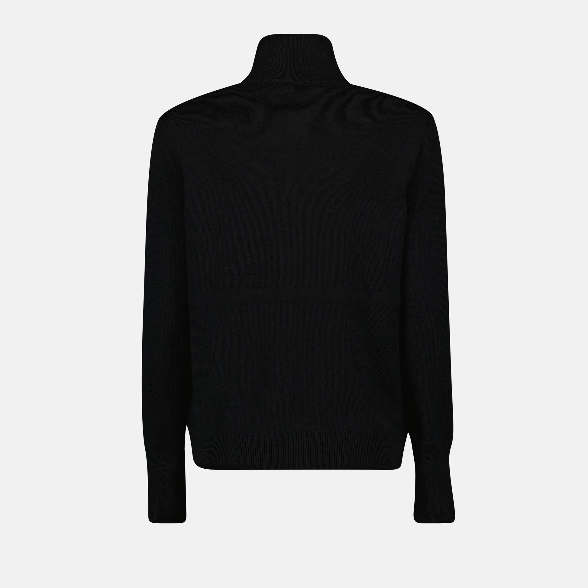 Black two-tone jacket by Moncler, designed for women. This piece is part of the Autumn-Winter 2024 collection and combines nylon and wool for an elegant style.