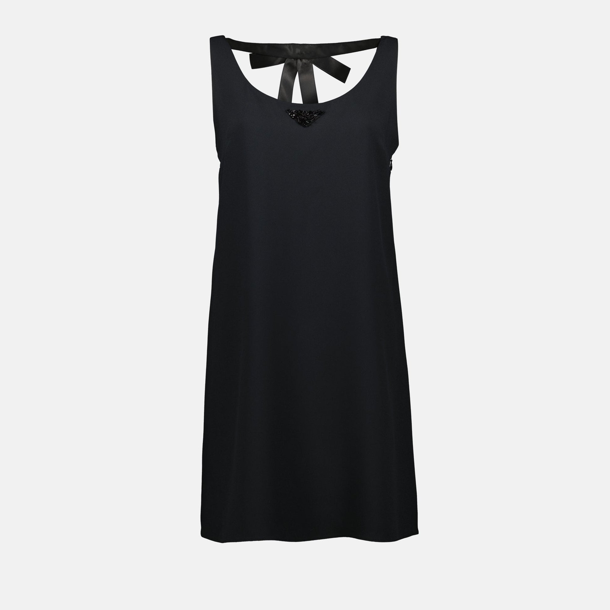 Black evening dress by Prada for women, made of viscose with elegant details such as thin straps and a sequined triangle. Fall-Winter 2024 collection, adjustable size.