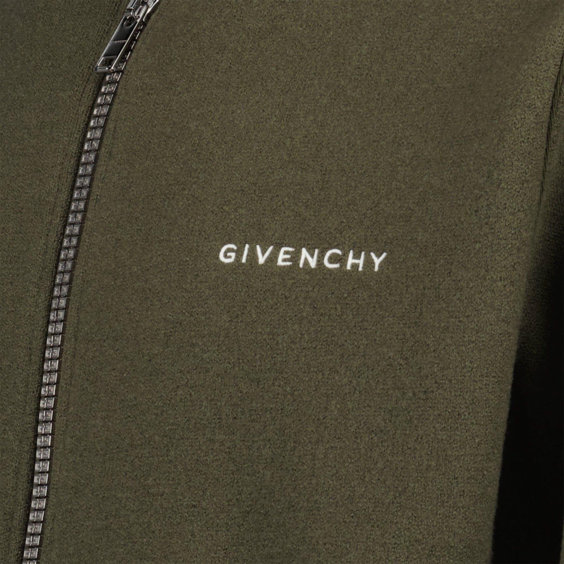 Khaki Varsity Jacket from Givenchy's Autumn-Winter 2024 collection for Men. Made of wool. Item color is khaki green. Ribbed collar and long sleeves.