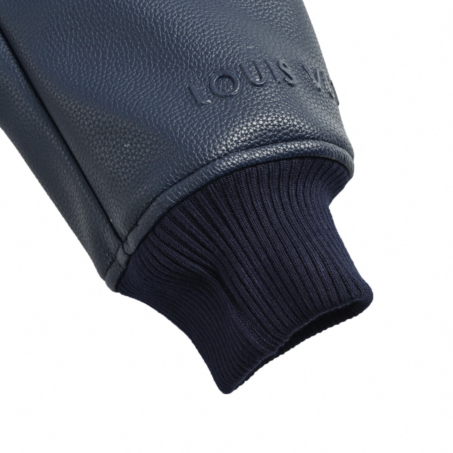 This Louis Vuitton Navy Monogram Embossed Varsity Jacket is a refined reinterpretation of the classic varsity silhouette, combining luxurious materials with the house’s iconic design language. The body features a rich navy fabric embossed with the all-over LV monogram, creating a subtle yet sophisticated texture. Complementing this, the sleeves are crafted from premium pebbled leather, offering a polished contrast and elevated finish.