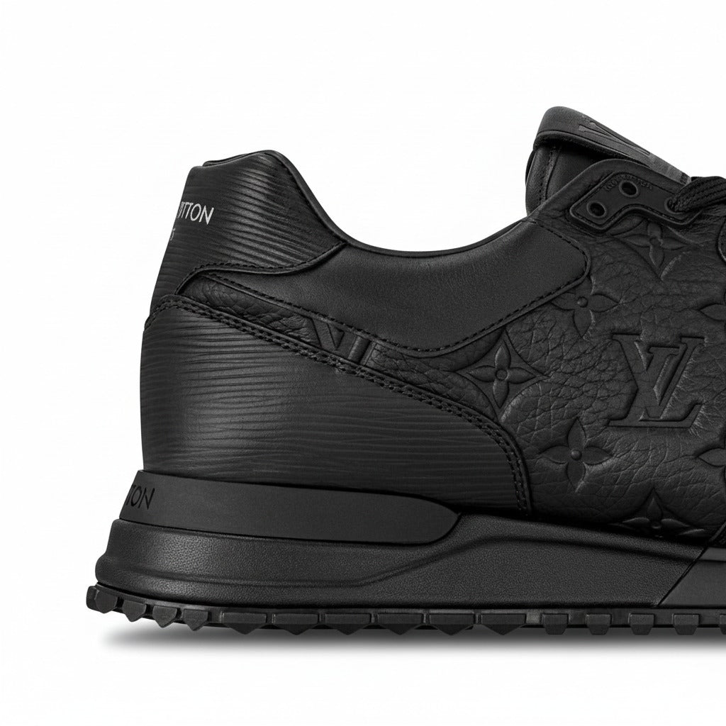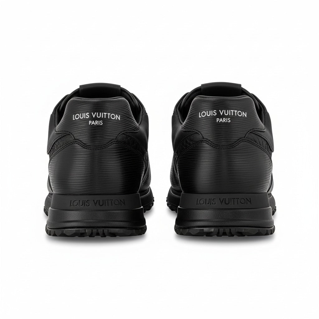 This edition of the Louis Vuitton Run Away Sneaker pairs two of the Maison’s most iconic materials: Monogram-embossed grained calf leather and Epi calf leather. Designed in a sleek monochrome black finish, it features a color-matched wedge-shaped rubber outsole inspired by classic running shoes. Signature details, including the LV Initials on the tongue and the Louis Vuitton Paris mark on the heel, complete this luxurious and sporty silhouette. Expertly crafted in Italy, it delivers premium style with everyday comfort.